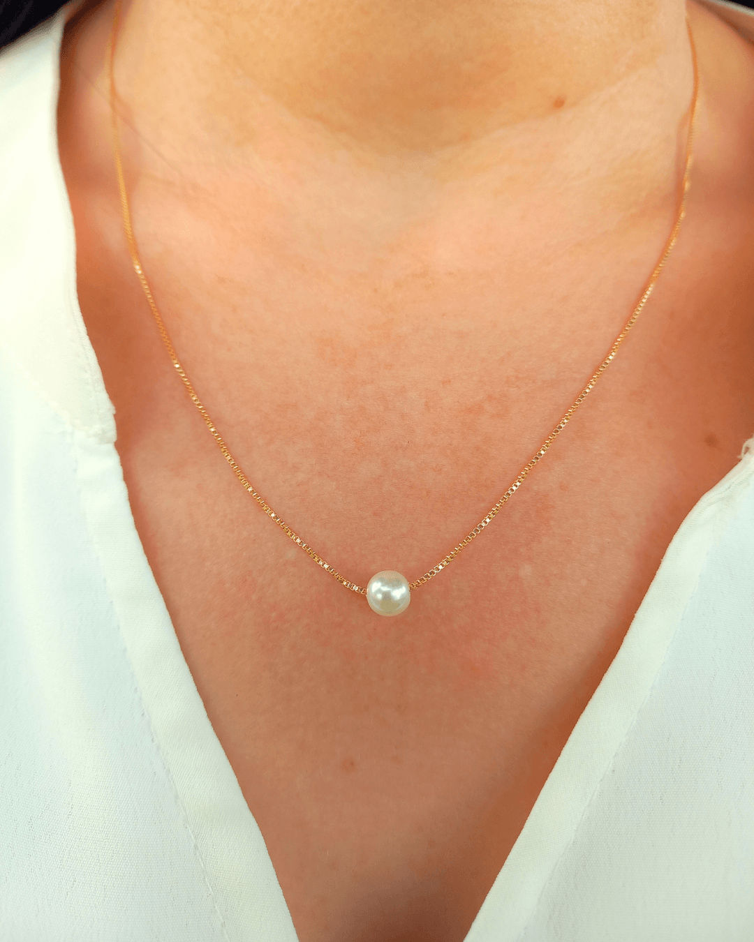 Colar Pérola banhado a ouro 18k com antialérgico e verniz de alta proteção. 45cm + 5cm extensor